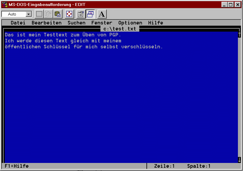 Wenn du einen Text verschlüsseln willst, machst du folgendes: 1. Du schreibst den Text, z.B. mit dem MS-DOS Editor